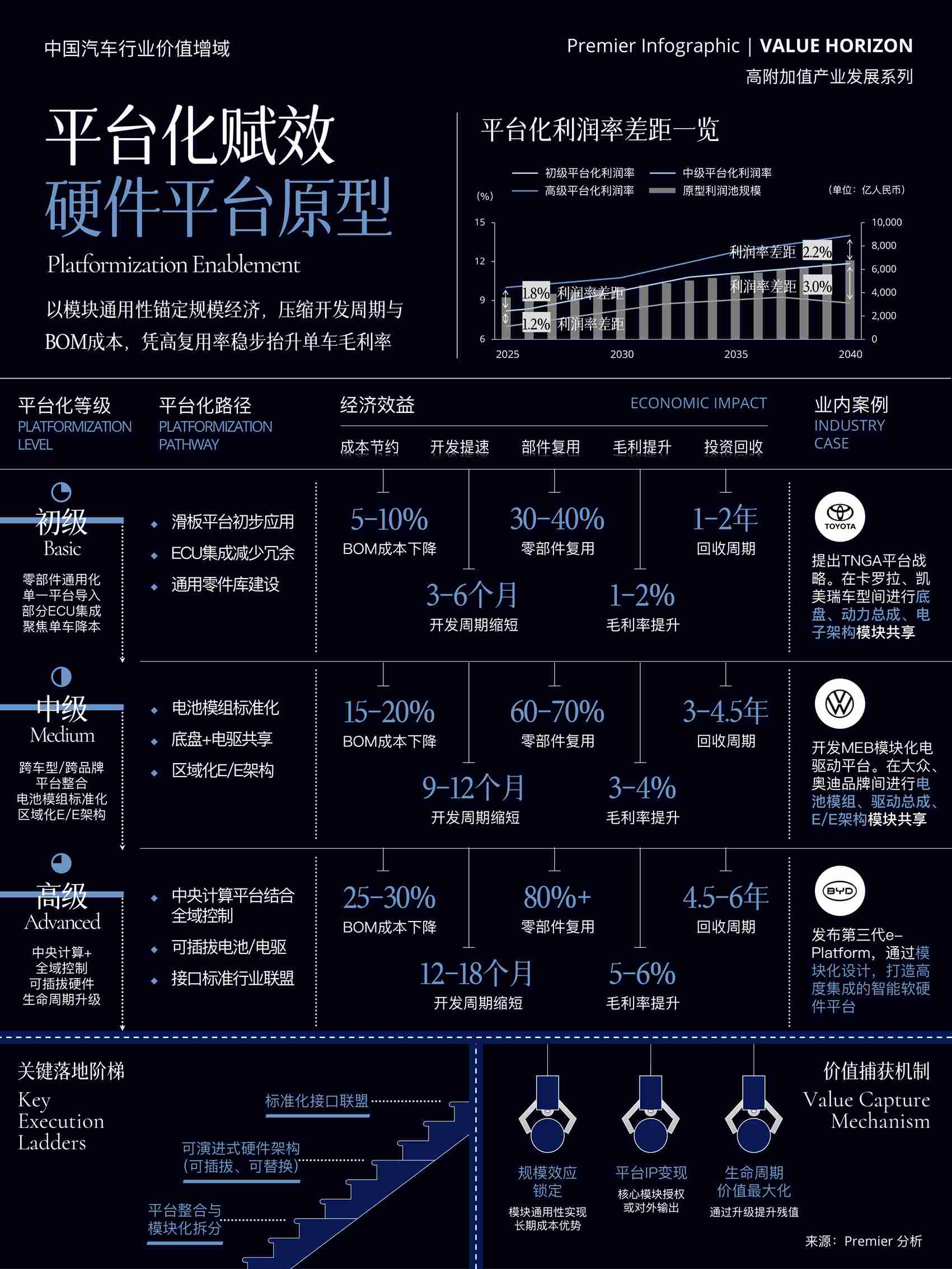 - 硬件平台原型 (Hardware Platform Archetype): 以模块化设计与平台复用实现规模经济。