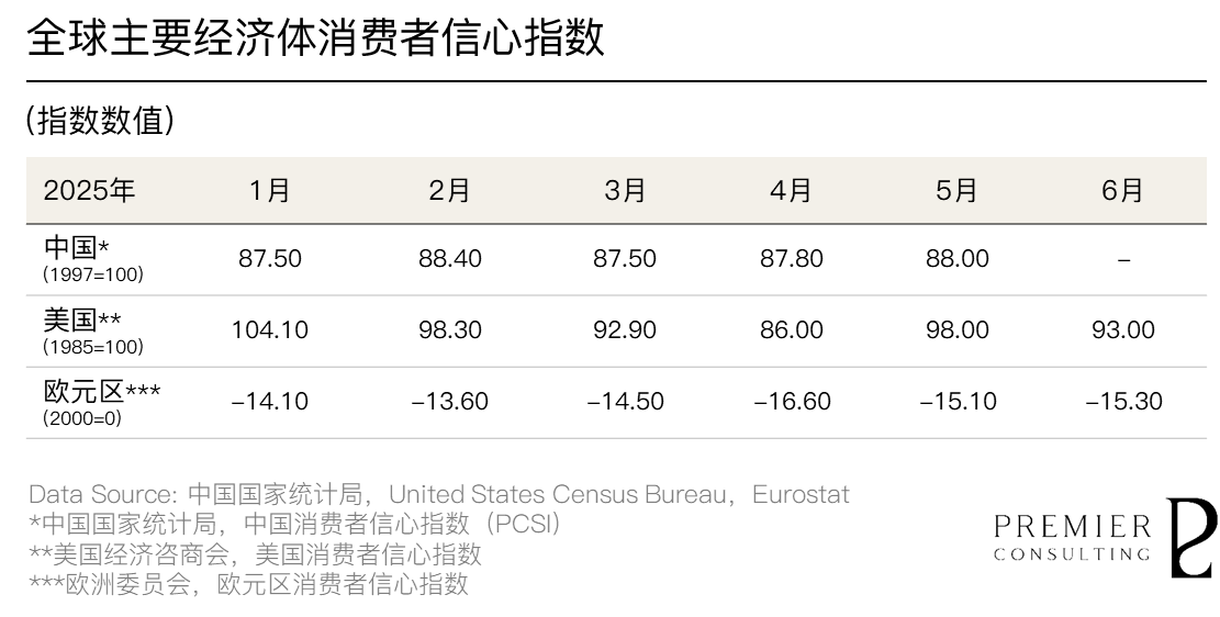2025年第二季度,中国消费者信心指数呈现温和回升态势,4月录得87.80,5月升至88.00,实现连续两月环比上行。这一信心修复的背后,是多项稳增长政策协同发力: