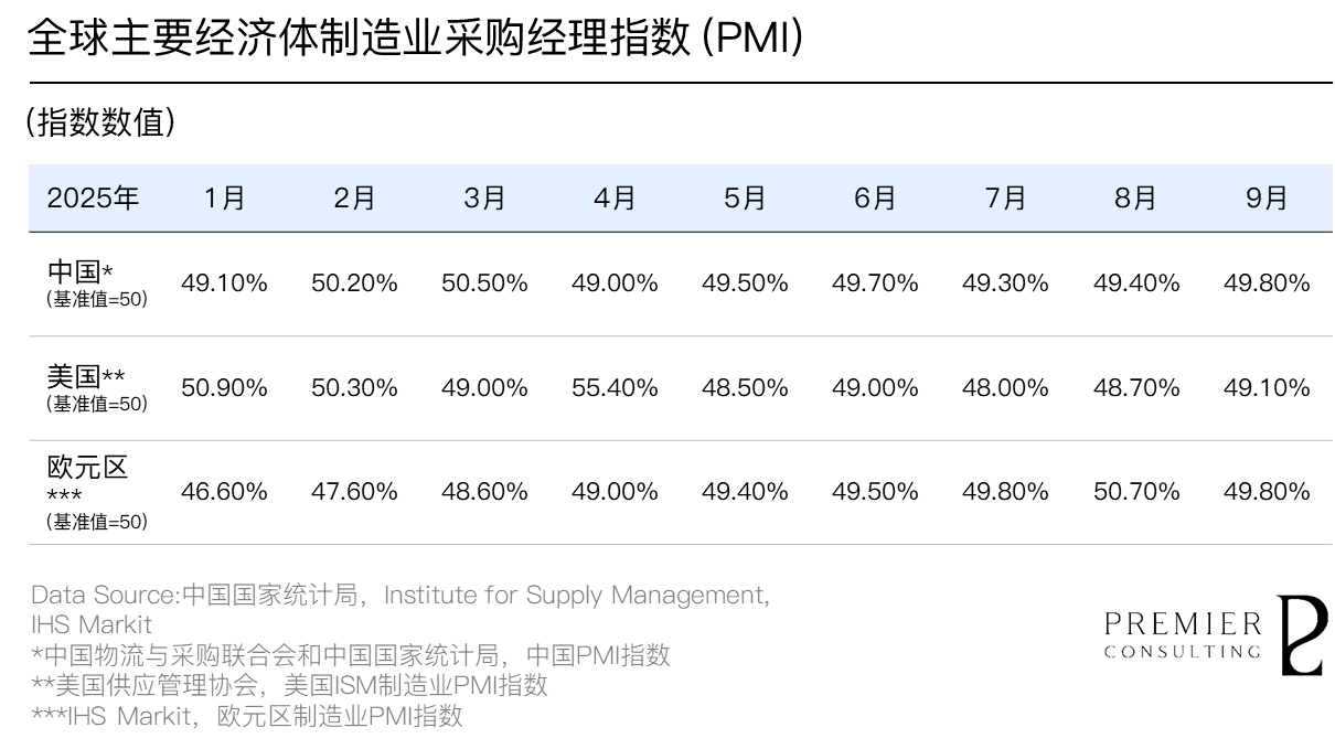 2025年第三季度,中国制造业景气度延续回升态势,行业运行总体稳中趋升。虽然制造业景气水平仍略低于荣枯线,但复苏动能逐步积聚,9月制造业PMI指数录得49.80%,创下二季度以来新高,反映出工业生产持续改善、供给端修复稳步推进。