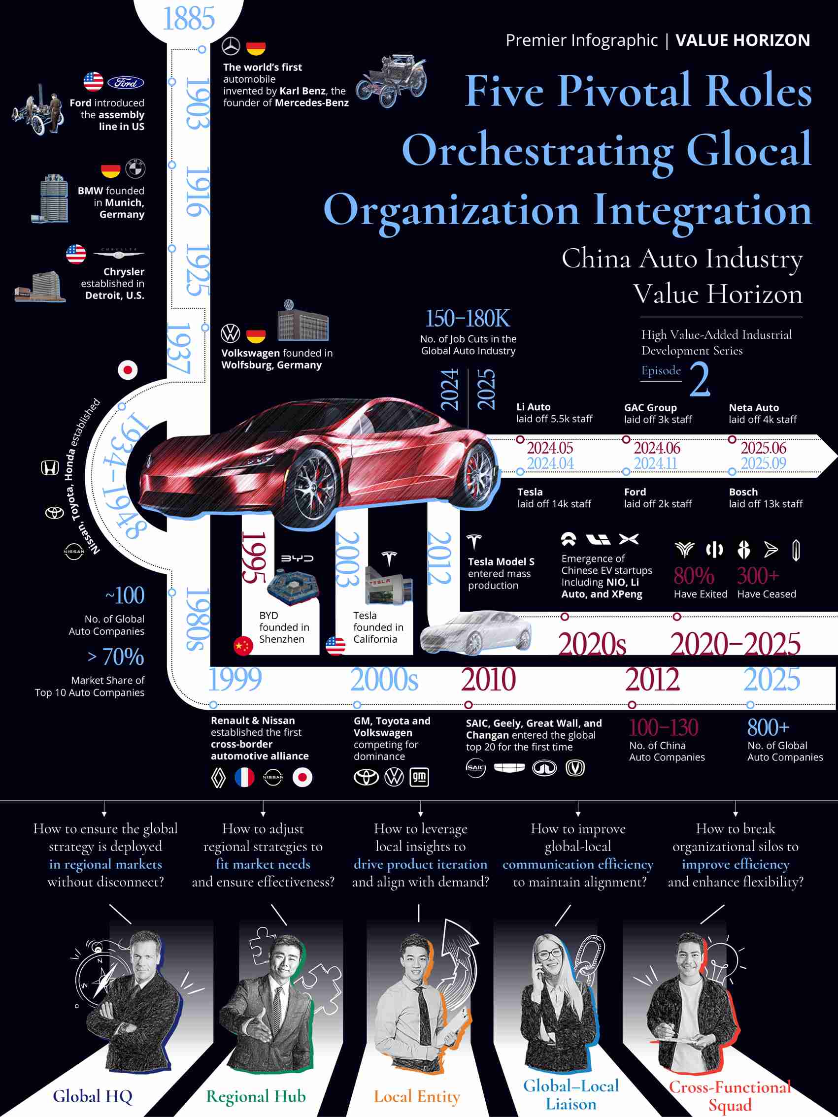 Articulate five pivotal roles that reconfigure cross-regional governance, coordination mechanisms, and value-creation logic—empowering Chinese automakers to optimize structure and elevate organizational efficacy worldwide.
