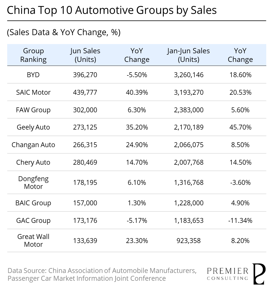 BYD Leads Cumulative Sales, While SAIC Group Shows Strong Monthly Recovery and Geely Maintains Double-Digit Growth