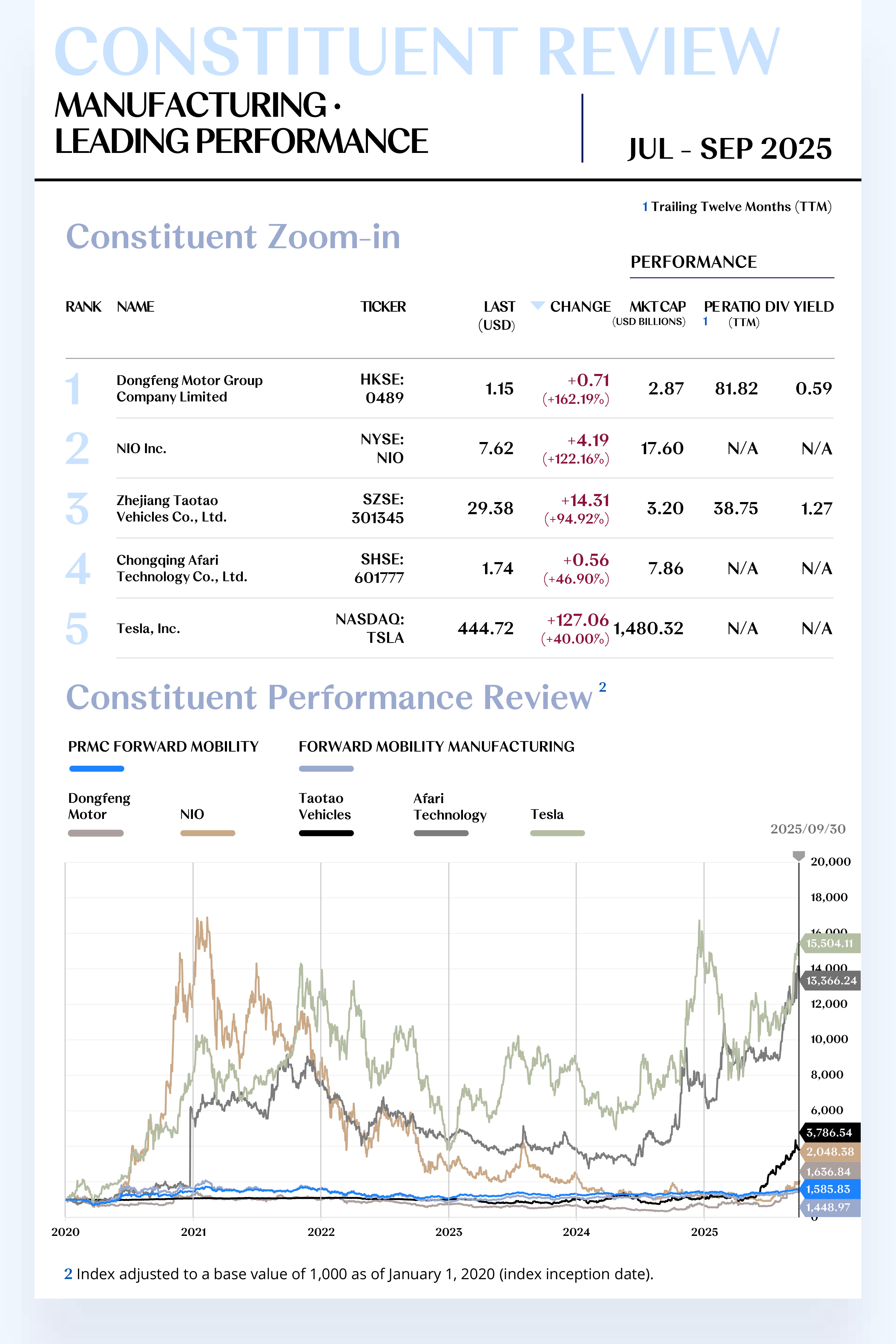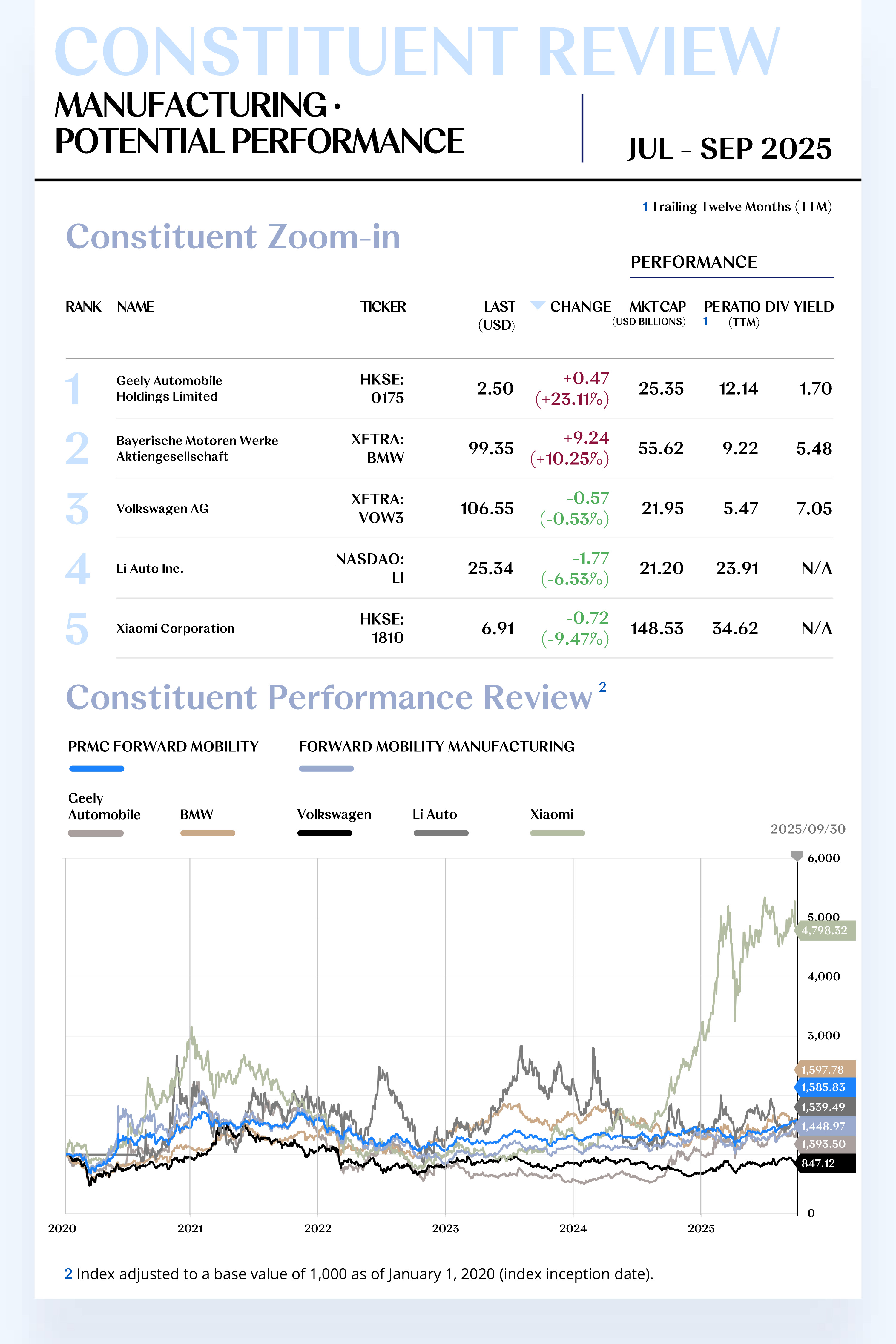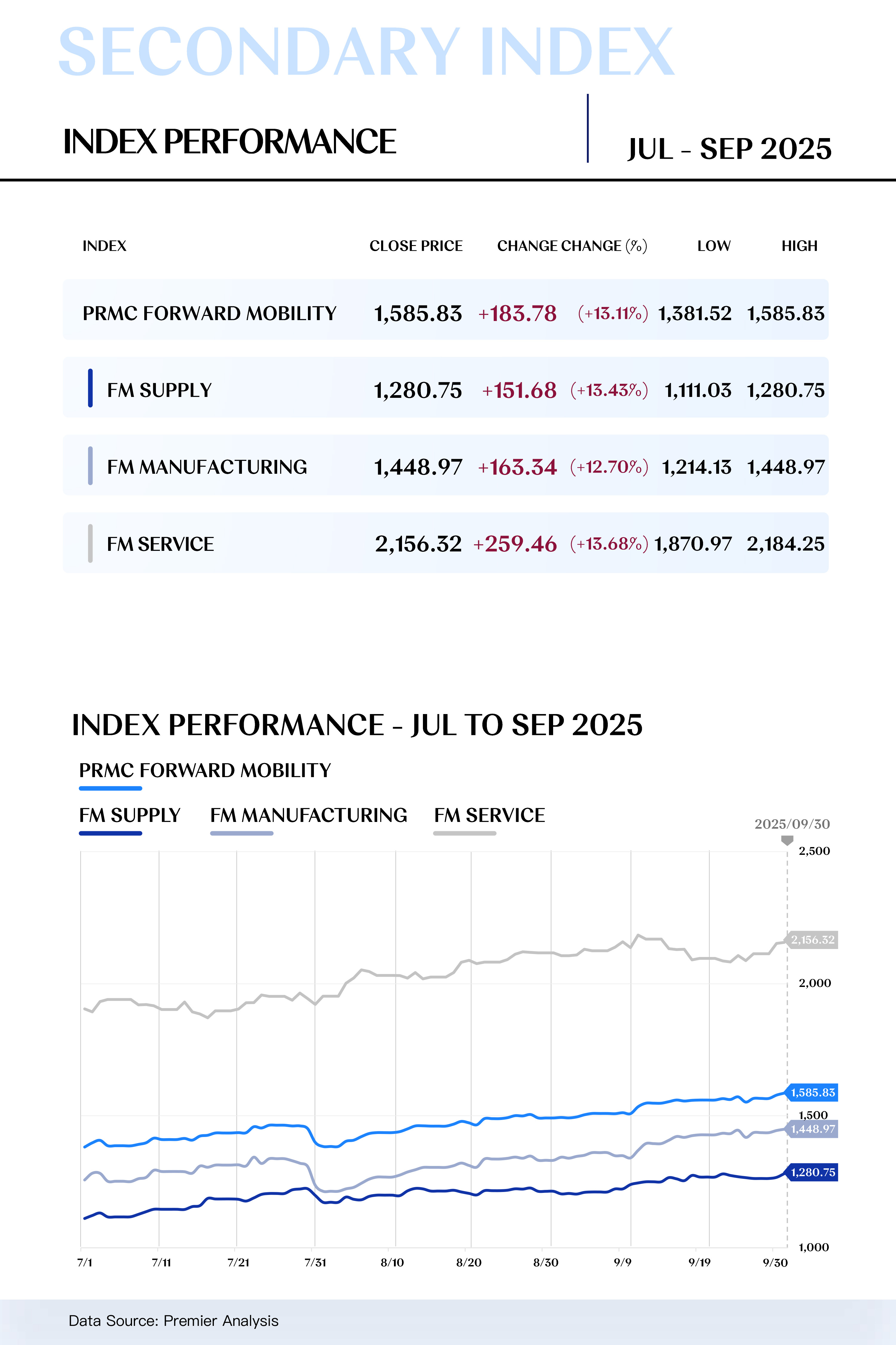 In the third quarter of 2025, the PRMC Forward Mobility Manufacturing Index closed at 1,448.97 points, up by 163.34 points, or 12.70%.
