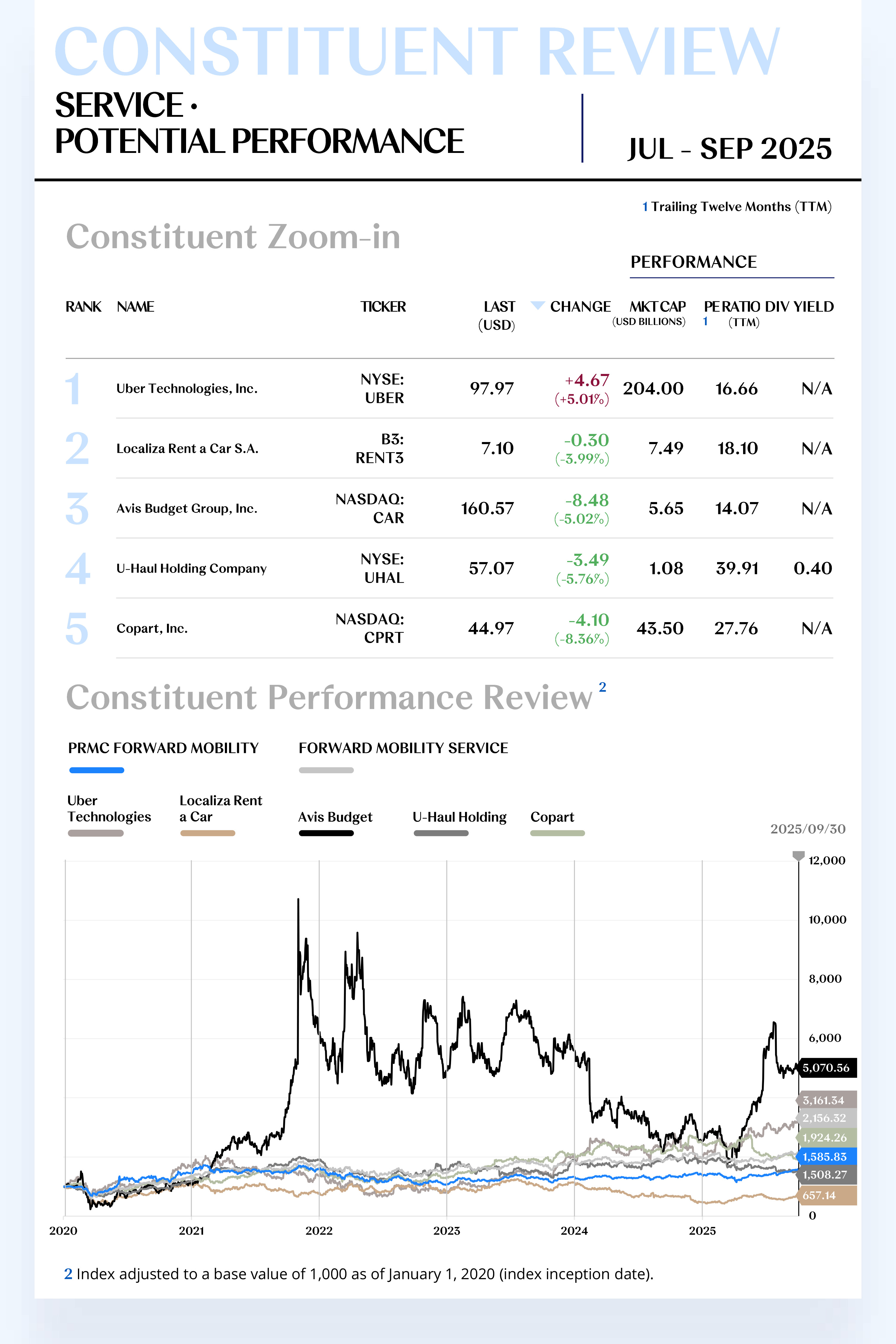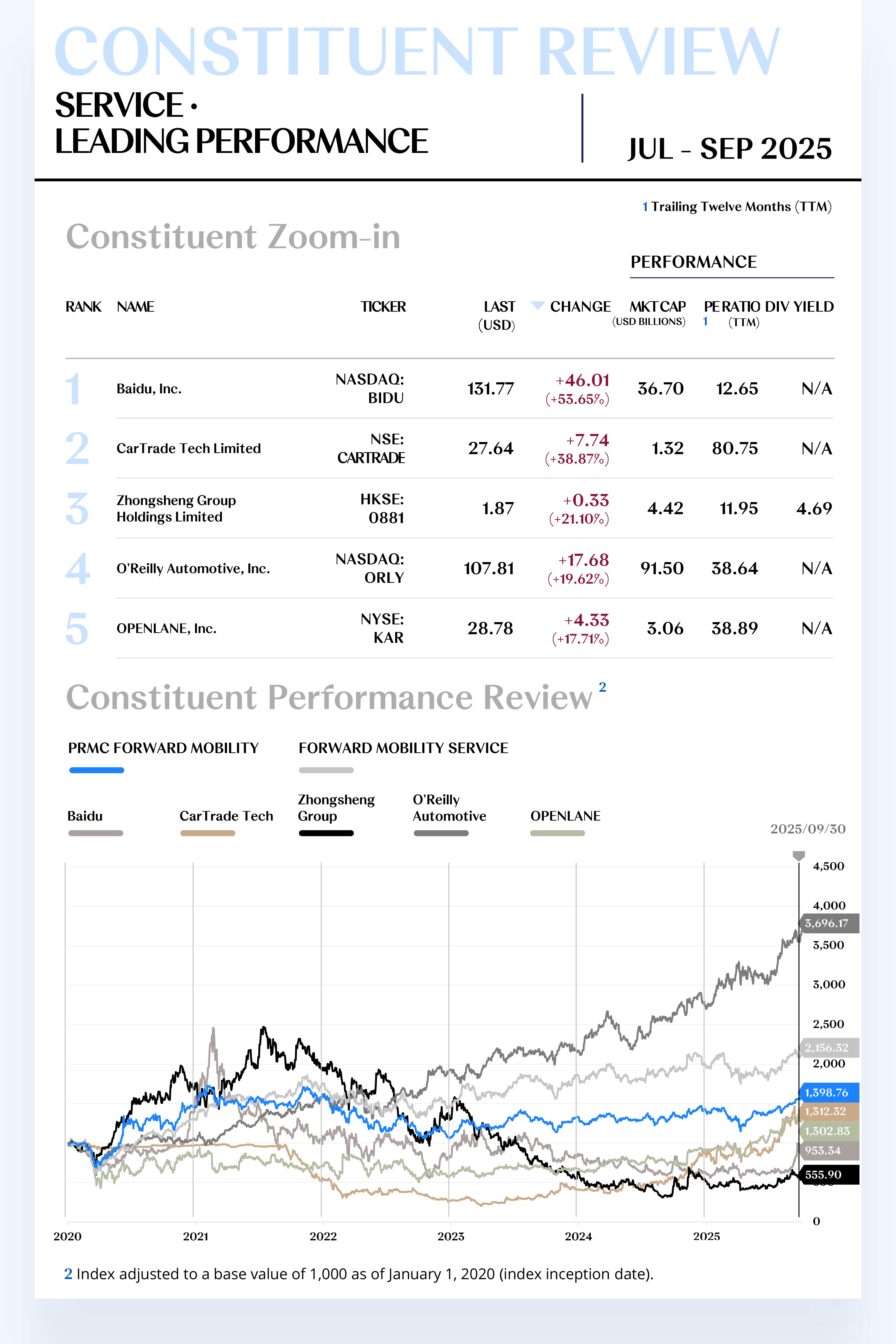 In the third quarter of 2025, the PRMC Forward Mobility Service Index closed at 2,156.32 points, increasing by 259.46 points, or 13.68%.